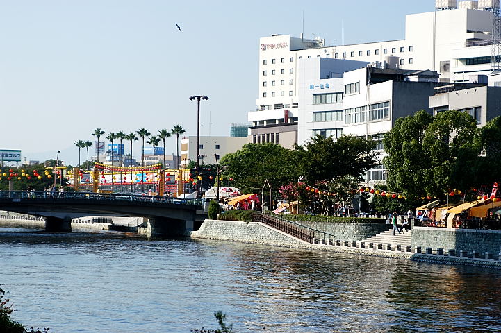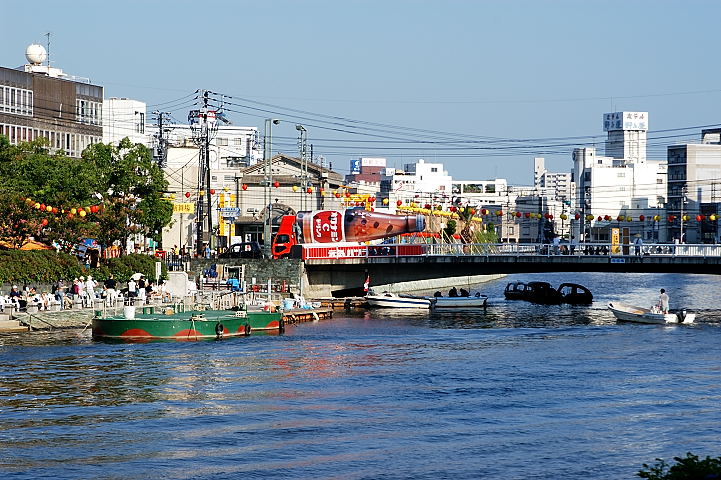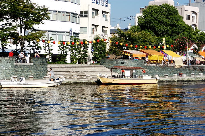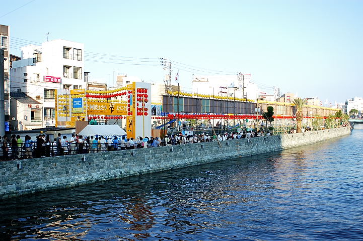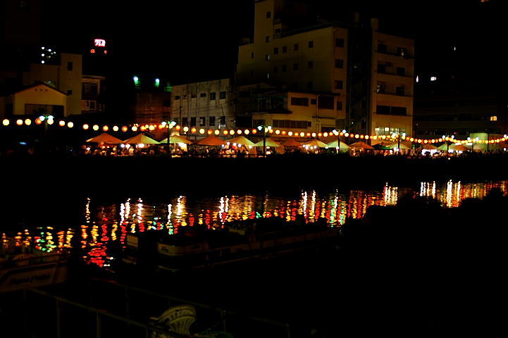 川の両岸には夜店が立ち並ぶ。