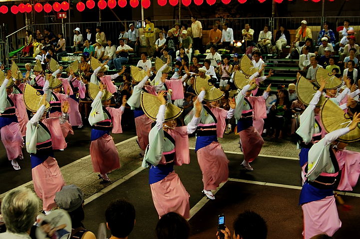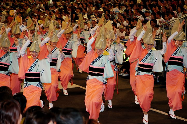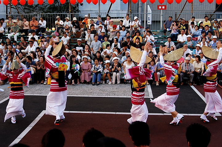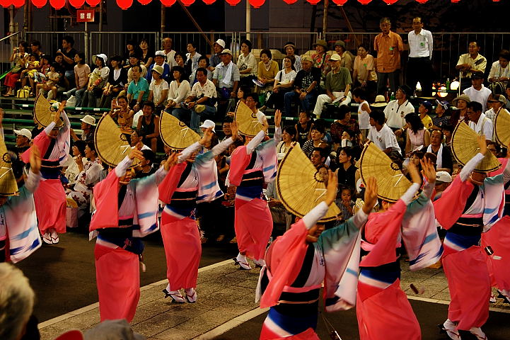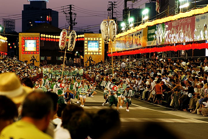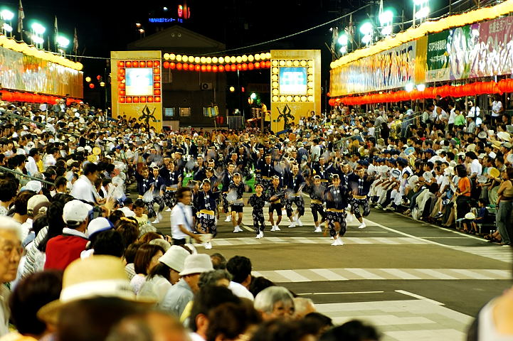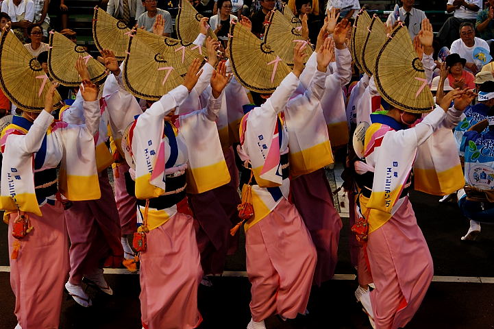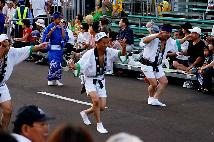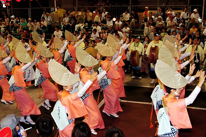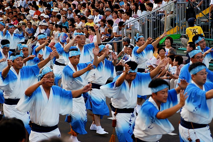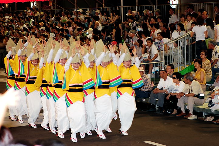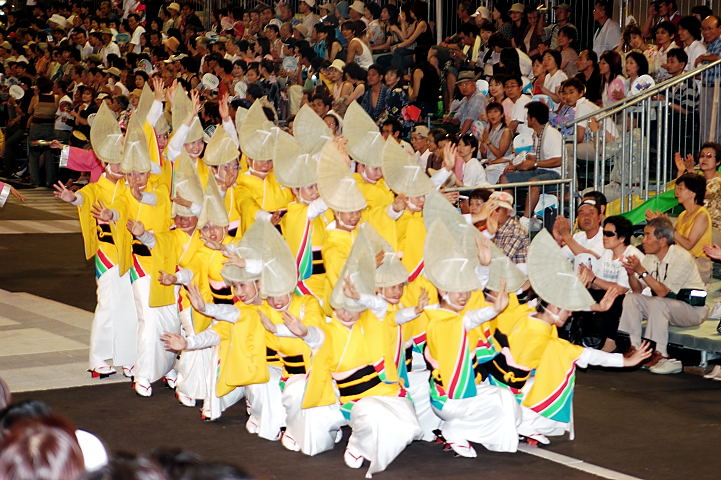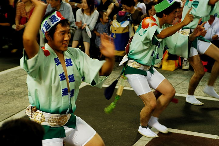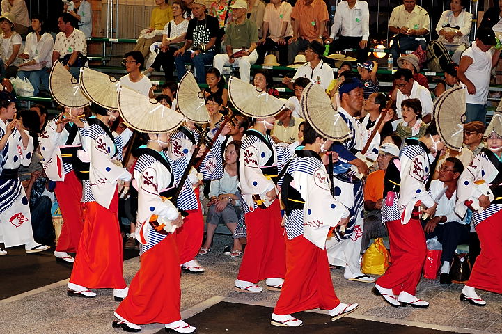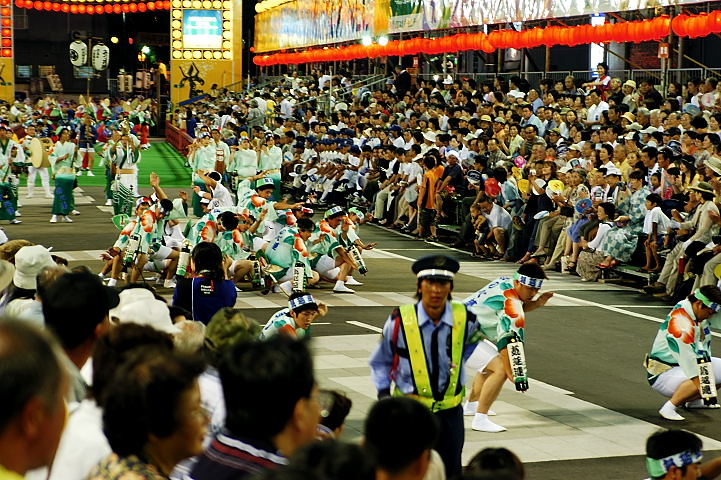 連(れん)というグループ別に演技(踊り)が行われ、その連の中も、大名行列のようにブロック化されている。