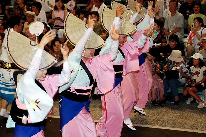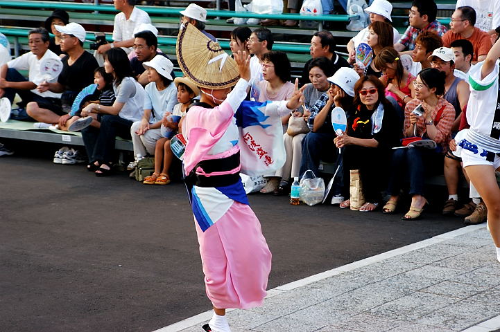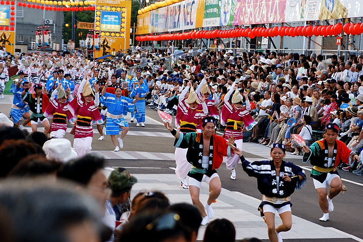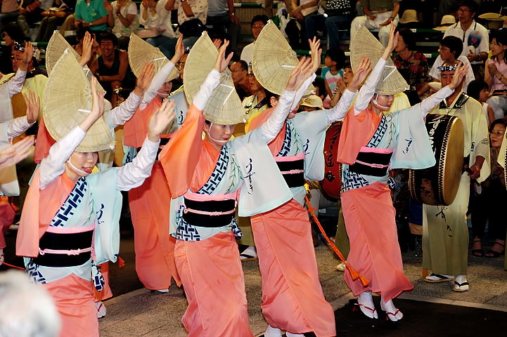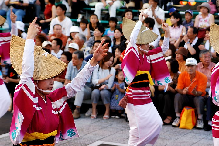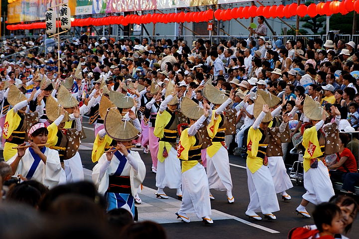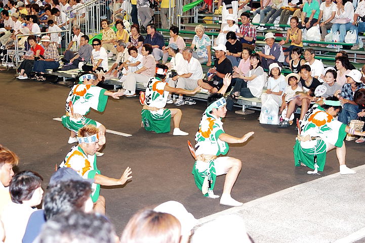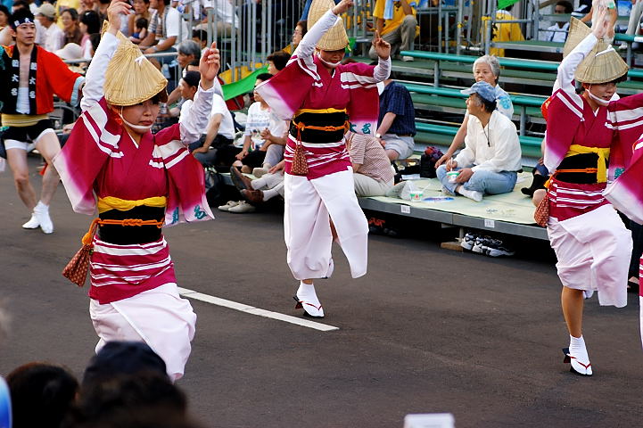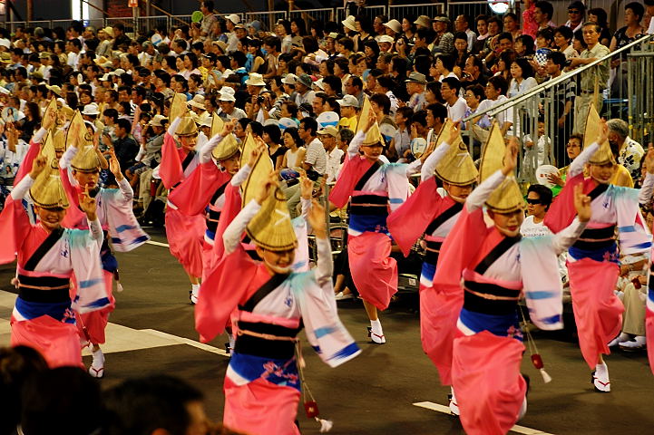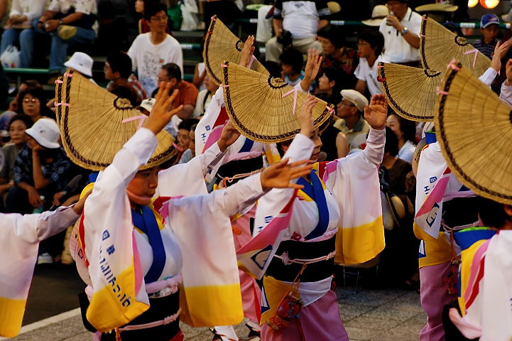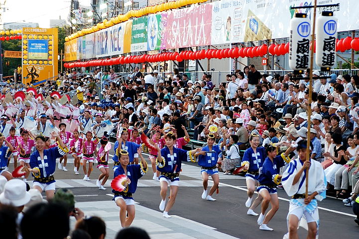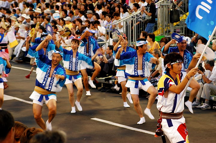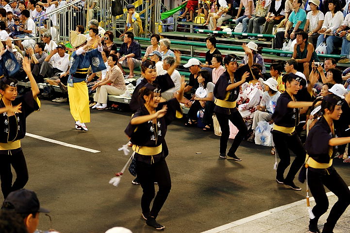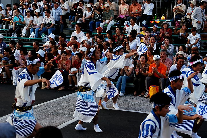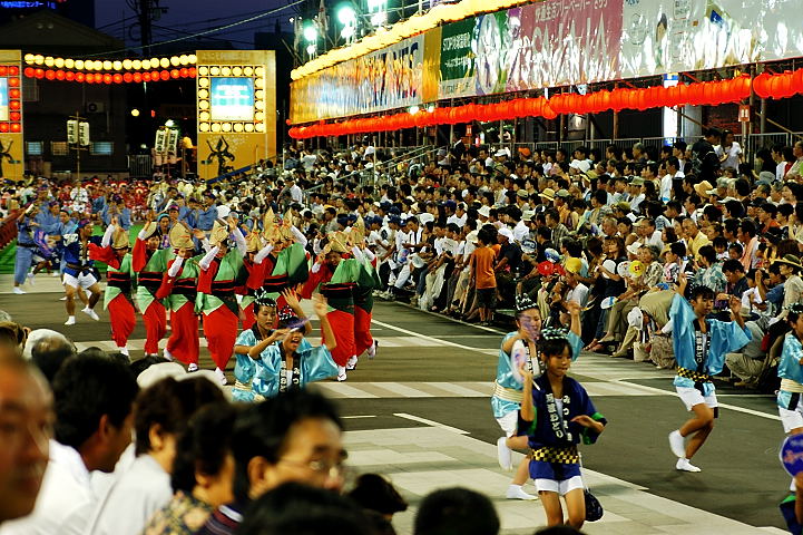 連(れん)というグループ別に演技(踊り)が行われ、その連の中も、大名行列のようにブロック化されている。