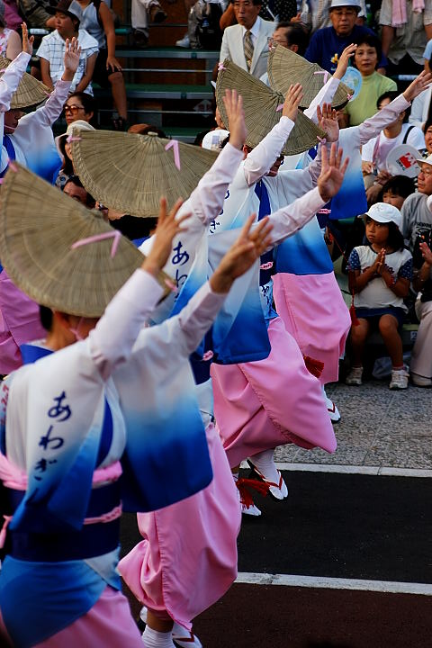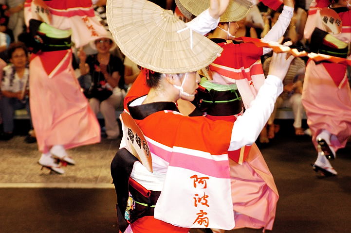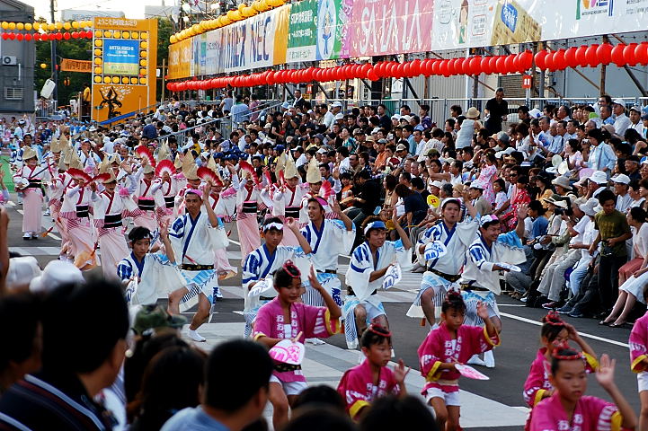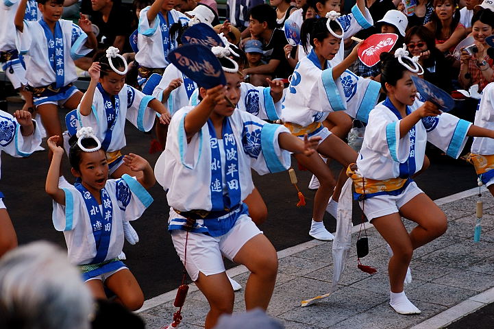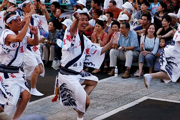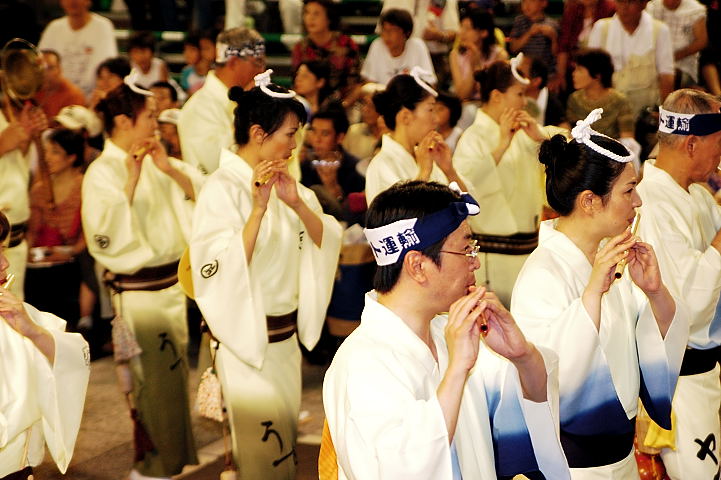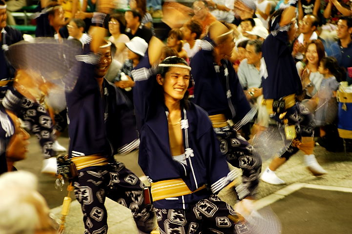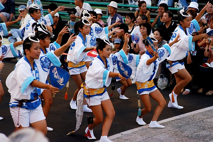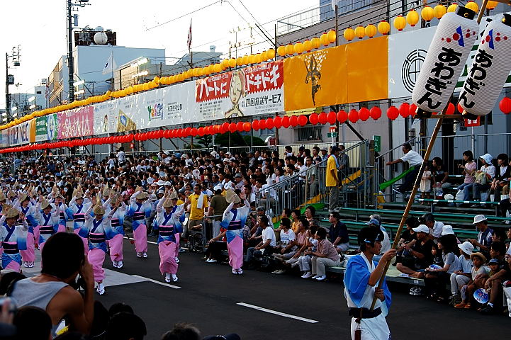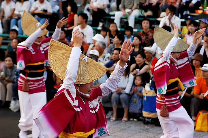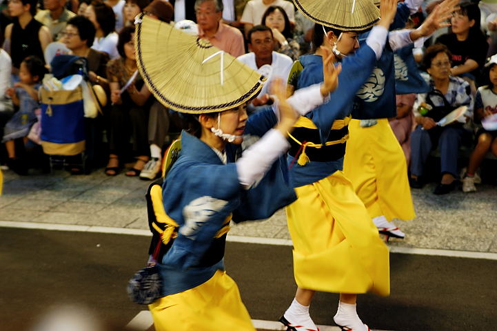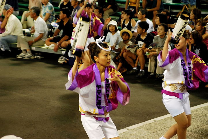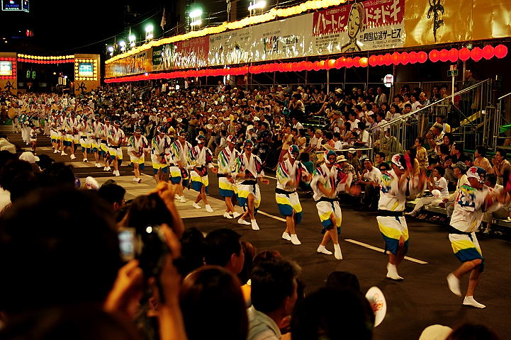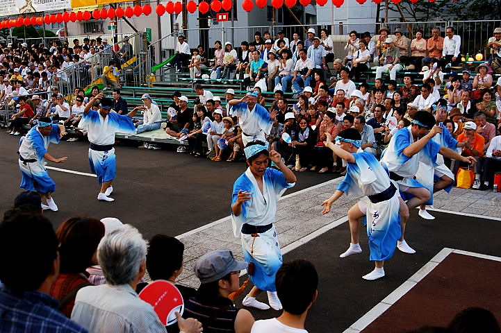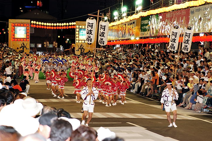 連(れん)というグループ別に演技(踊り)が行われ、その連の中も、大名行列のようにブロック化されている。