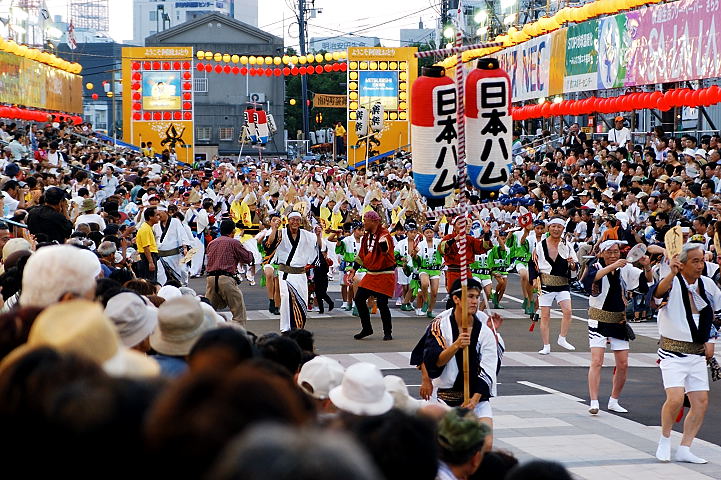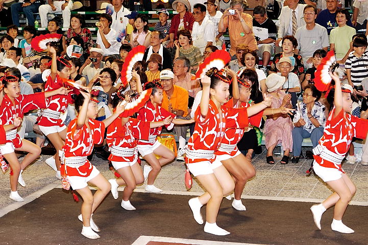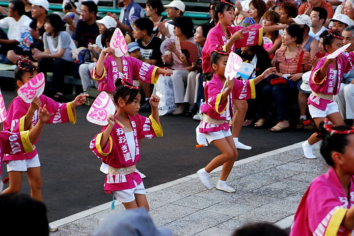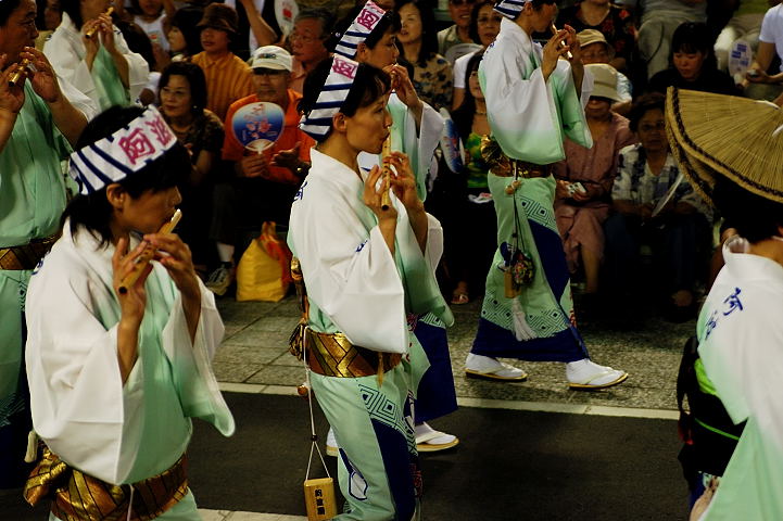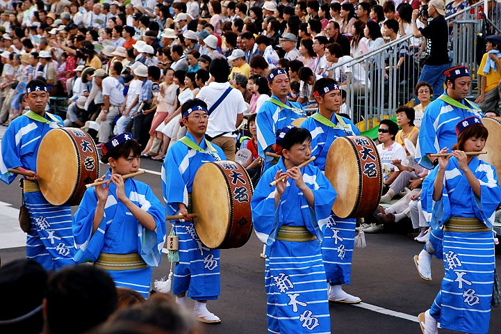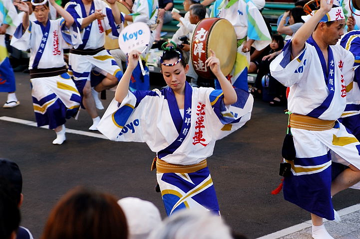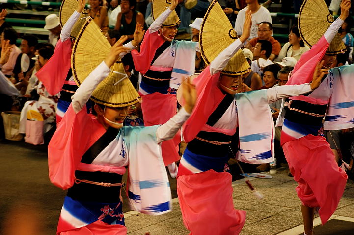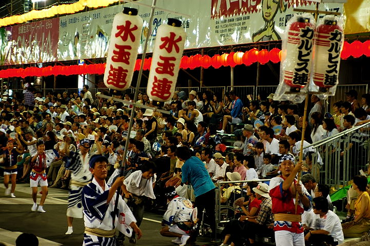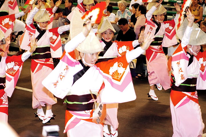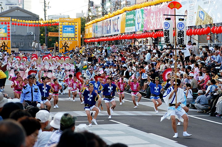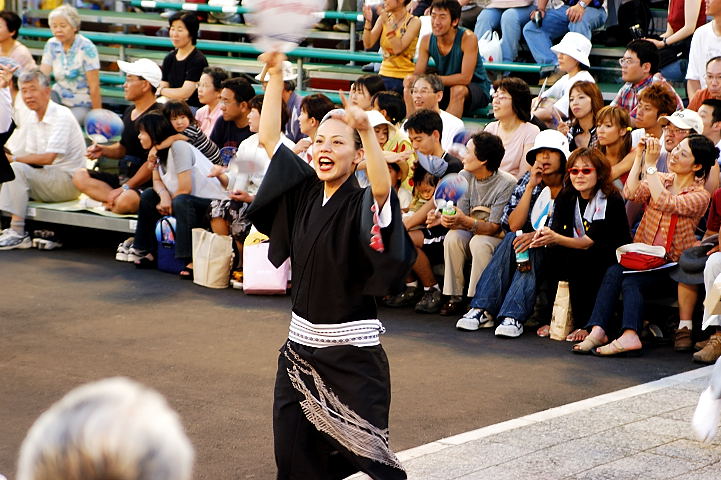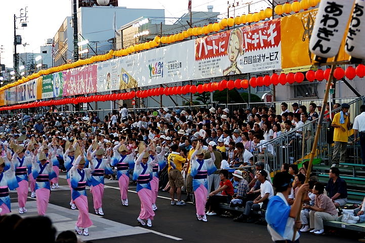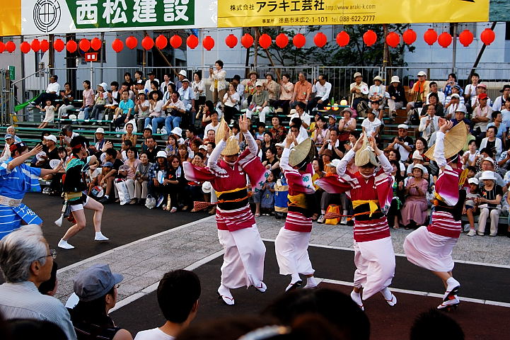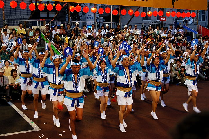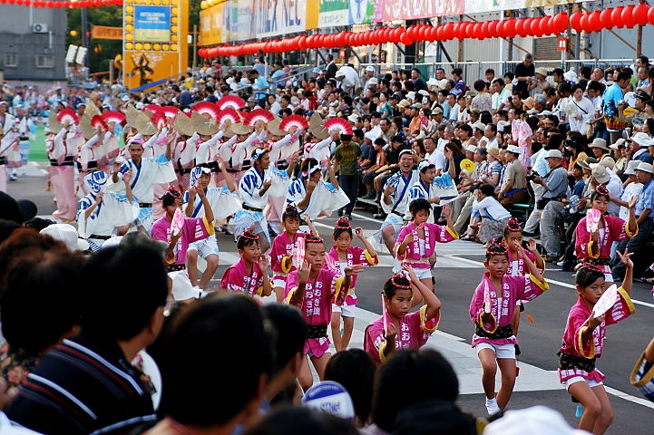 連(れん)というグループ別に演技(踊り)が行われ、その連の中も、大名行列のようにブロック化されている。