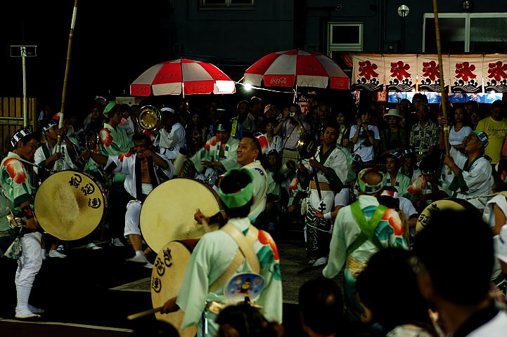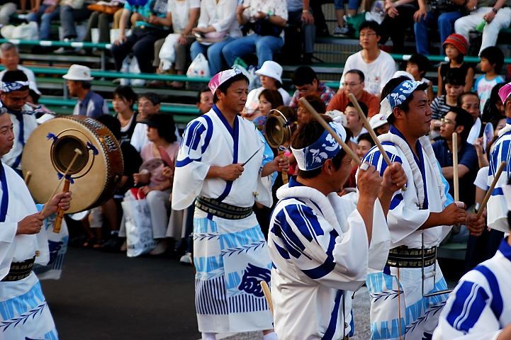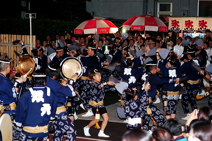 演舞場の最後のところで鳴り物が盛大に鳴り、最後を締めます。